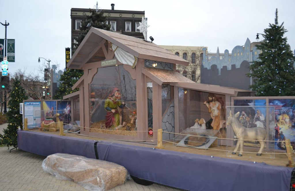 Why is the nativity displayed in Monument Square?